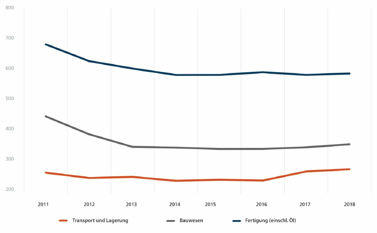 Aufgrund der auffällig hohen Anzahl an Arbeitsunfällen haben wir auch die Transportbranche in die Analyse mit einbezogen.