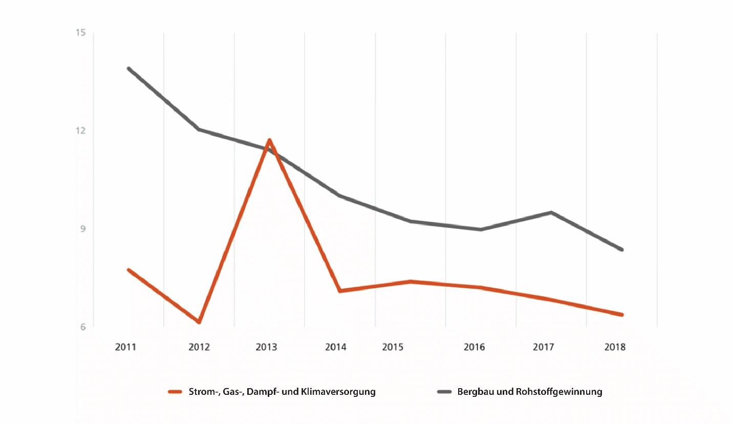Wir haben auch die Entwicklung der gemeldeten Verletzungszahlen in diesen Branchen über die letzten Jahre hinweg detailliert untersucht.