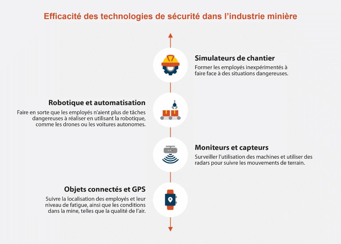 Pour l’industrie minière, les technologies les plus souvent mentionnées et les plus efficaces sont celles qui éloignent les employés des situations potentiellement dangereuses ou qui les avertissent.