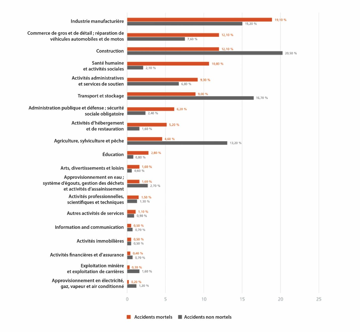 Pour cette étude, nous nous sommes concentrés sur les industries lourdes telles que la construction, l’industrie manufacturière, l’exploitation minière, l’industrie pétrolière et gazière. Comme le montrent les dernières données disponibles d’Eurostat sur les accidents du travail, non mortels et mortels, il y a encore beaucoup de progrès à faire.
